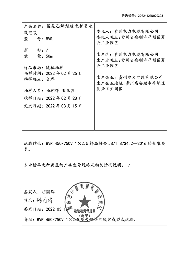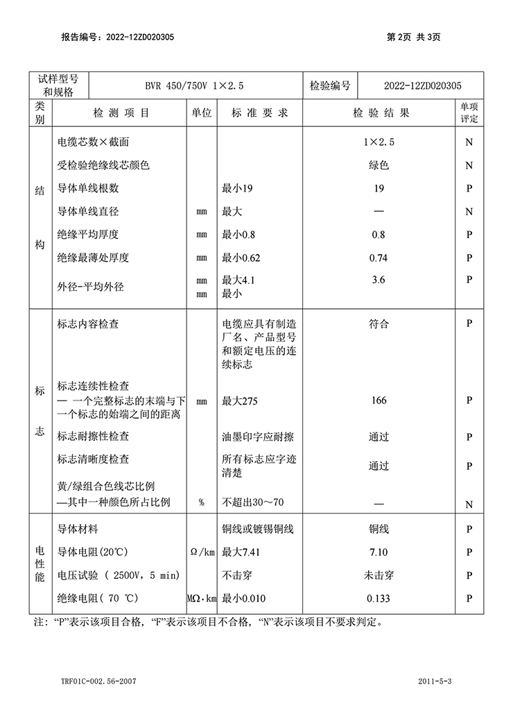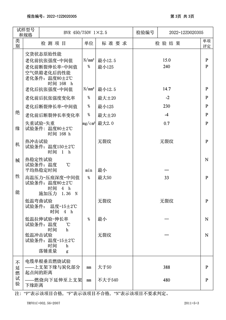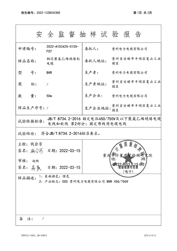 聚氯乙烯絕緣無(wú)護(hù)套電線電纜 國(guó)家強(qiáng)制性產(chǎn)品認(rèn)證(CCC)試驗(yàn)報(bào)告